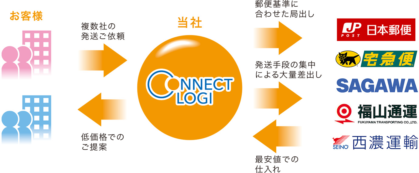 日本郵便、ヤマト運輸、佐川急便、西濃運輸、福山通運、チャーターなど、様々な運送会社様と提携しており最適な発送方法を提案させて頂き、発送コストの削減をお手伝いさせて頂きます。